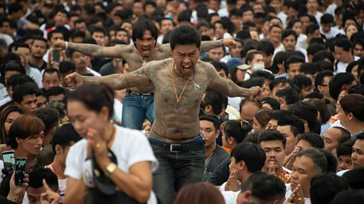 ชายหญิงเกือบร้อยชีวิต นั่งคอยอย่างมุ่งมั่น บริเวณลานหน้ากุฏิของพระอาจารย์รูปหนึ่งของวัดบางพระ จ. นครปฐม เป้าหมายของพวกเขา คือ รับการสักยันต์บนเรือนร่าง จากอาจารย์สักฆราวาสชื่อดัง ศิษย์สายตรง และศิษย์รุ่น 2 ของหลวงพ่อเปิ่น ผู้ขมังเวทย์อาคม ตามความเชื่อของผู้ศรัทธา