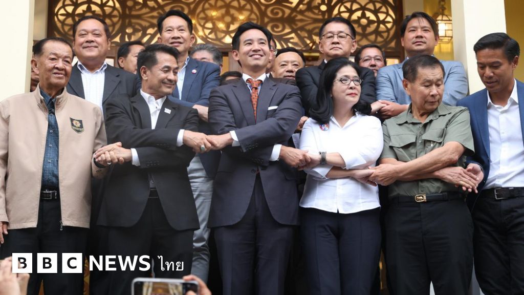 เลือกตั้ง 2566 : ภาพแรกแกนนำ 6 พรรค “จับมือ” ตั้งรัฐบาลร่วมกับก้าวไกล