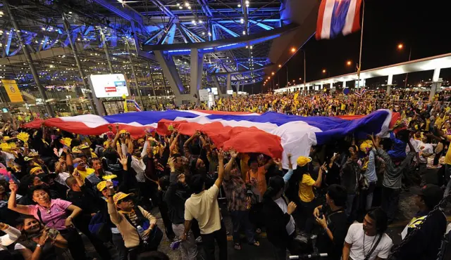 หลังจากผู้ชุมนุมเข้ายึดพื้นที่สนามบิน 2 แห่ง ผู้อำนวยการท่าอากาศยานสุวรรณภูมิและรักษาการกรรมการผู้อำนวยการใหญ่ บริษัท ท่าอากาศยานไทย ได้ประกาศปิดการขึ้นลงทุกเที่ยวบินทั้งหมดในเช้ามืดวันที่ 26 พ.ย. ทำให้มีผู้โดยสารตกค้างรวมประมาณ 3,000 คน โดยส่วนใหญ่เป็นนักท่องเที่ยวต่างชาติ
