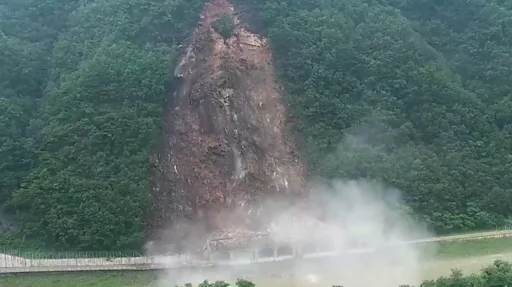 ภาพมุมสูงจากพื้นที่ประสบอุทกภัย แสดงให้เห็นน้ำโคลนและมวลน้ำที่สูงจนถึงหลังคาบ้านเรือน นายกรัฐมนตรีฮัน ด็อก-ซู ของเกาหลีใต้ ได้สั่งให้กองทัพเข้าช่วยเหลือผู้ประสบภัยอย่างเร่งด่วน โดยจนถึงตอนนี้ มีการอพยพประชาชนหลายพันคนออกจากพื้นที่เสี่ยงน้ำท่วมและดินถล่มแล้ว