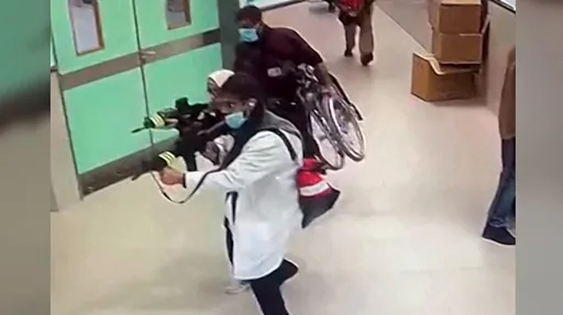 ขณะที่ภาพจากกล้องวงจรปิดแสดงให้เห็นว่า สมาชิกหน่วยสายลับปลอมตัวเป็นเจ้าหน้าที่ทางการแพทย์และพลเรือนคนอื่น ๆ บุกเข้ามาในทางเดินของตัวโรงพยาบาล พร้อมกับยกปืนไรเฟิลขึ้น