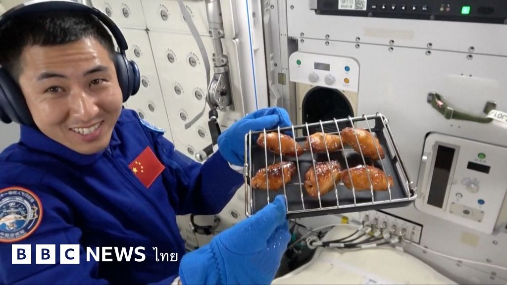 นักบินอวกาศจีนโชว์ย่างไก่บนยานอวกาศ
