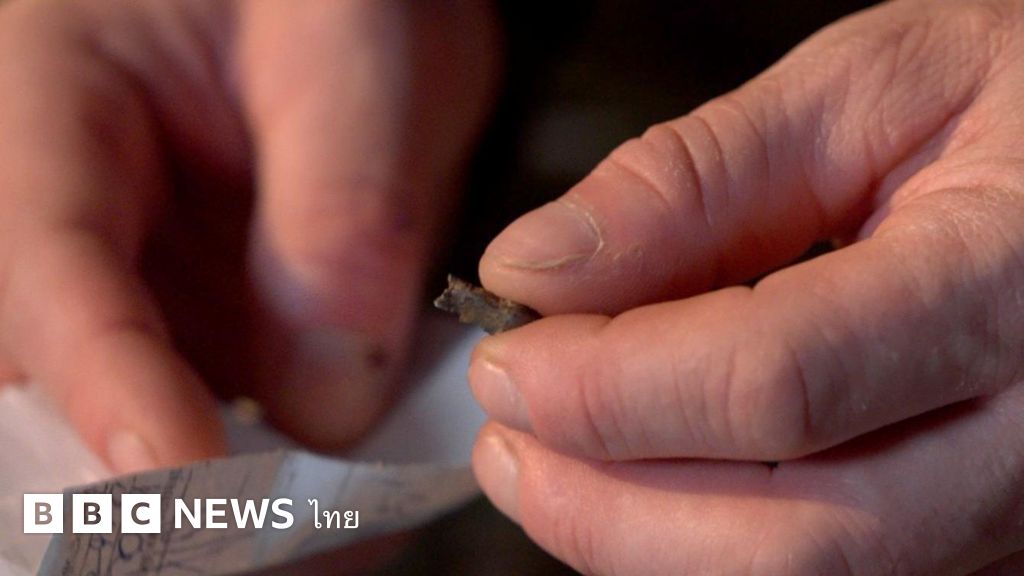 เชอร์ฮีย์ เมลนิก หยิบสะเก็ดระเบิดเล็ก ๆ มีสนิมเกรอะที่ห่อด้วยกระดาษอย่างดีจากกระเป๋าของเขาออกมา