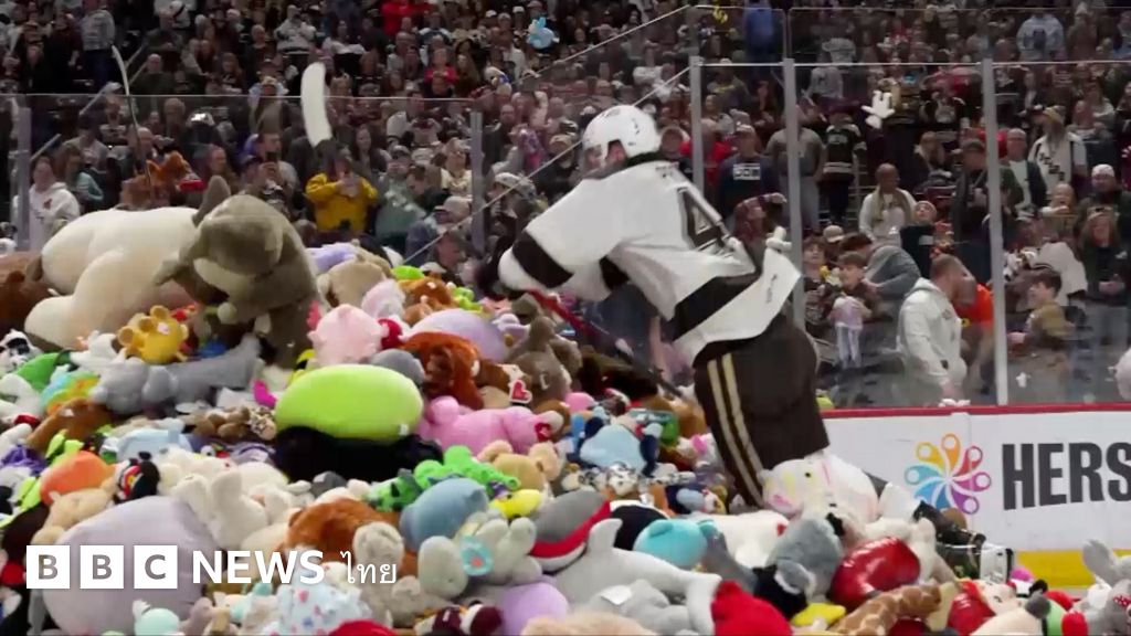ชมวินาทีที่ตุ๊กตากว่า 80,000 ตัว ทุกปาลงในสนาม ในการแข่งขันฮอกกี้น้ำแข็งที่สหรัฐฯ
