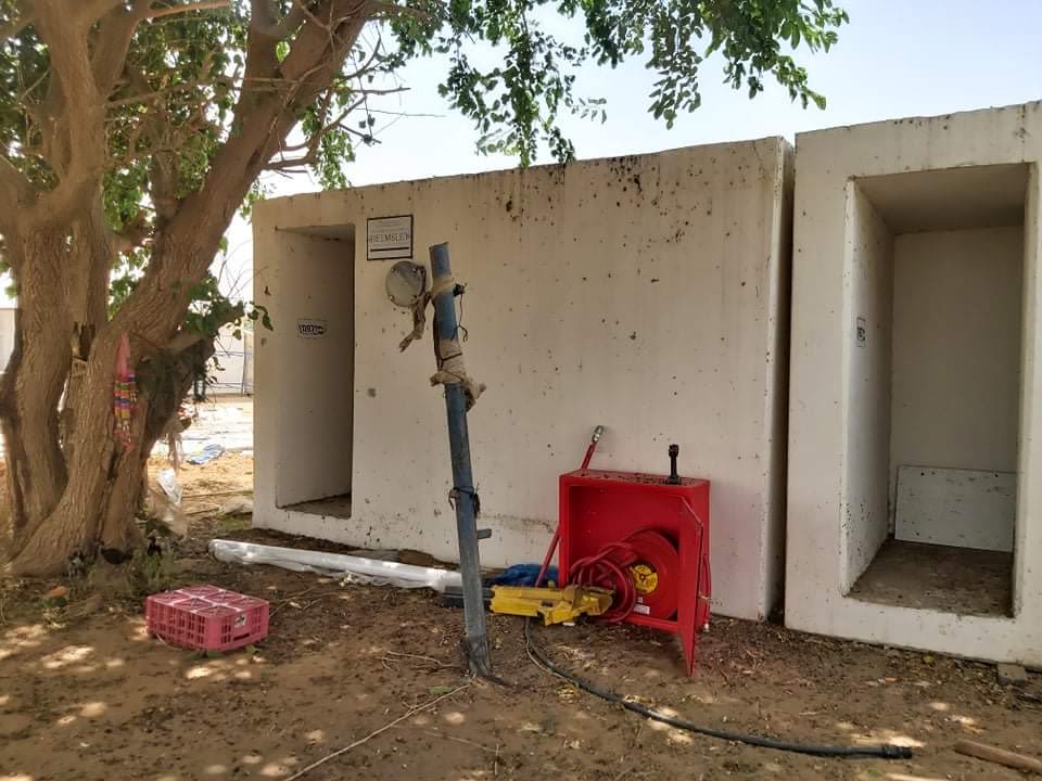 แต่สถานที่หลบภัยของพวกเขา มีเพียงสิ่งก่อสร้างทำจากคอนกรีตรูปทรงสี่เหลี่ยมผืนผ้า 3 อัน และอุโมงค์ท่อส่งน้ำขนาดใหญ่ 2 อัน