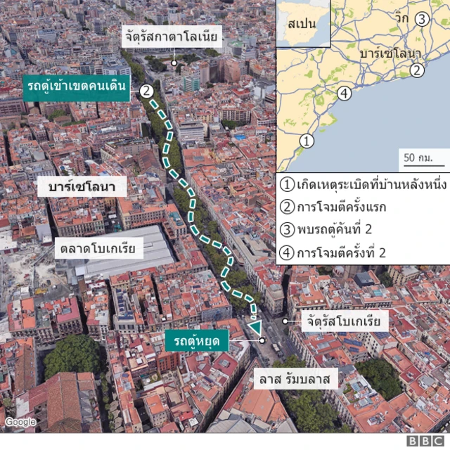 ขณะนี้ตำรวจยังคงตามล่าตัวคนขับรถตู้ที่ใช้ก่อเหตุในนครบาร์เซโลนาที่ยังคงหลบหนีอยู่