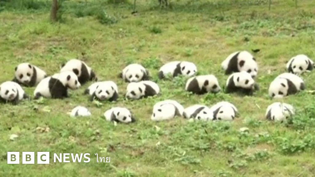 ลูกแพนด้าที่เกิดในปี 2017 กว่า 30 ตัว ถูกนำออกมาจัดแสดงในมณฑลเสฉวนของจีน
