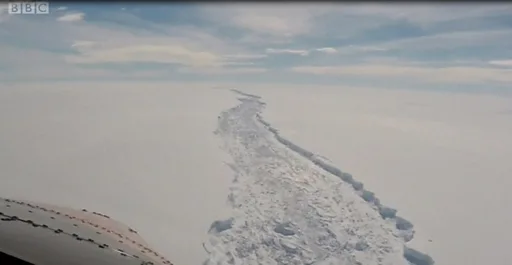 ในบางพื้นที่ แผ่นน้ำแข็งขนาดใหญ่ได้แตกออก และถล่มลงเป็นภูเขาน้ำแข็งจำนวนมาก แล้วก็ลอยออกไปอย่างสะเปะสะปะ