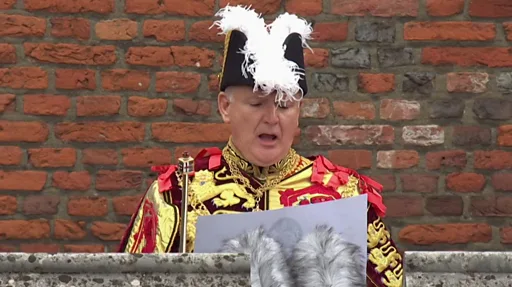 เจ้าพนักงานอาลักษณ์สภาองคมนตรีประกาศให้กษัตริย์ชาร์ลส์ที่ 3 เป็น "กษัตริย์แห่งเครือจักรภพ ผู้ปกป้องศาสนา" ก่อนที่จะมีการประกาศว่า "ขอพระเจ้าจงคุ้มครองพระราชา"