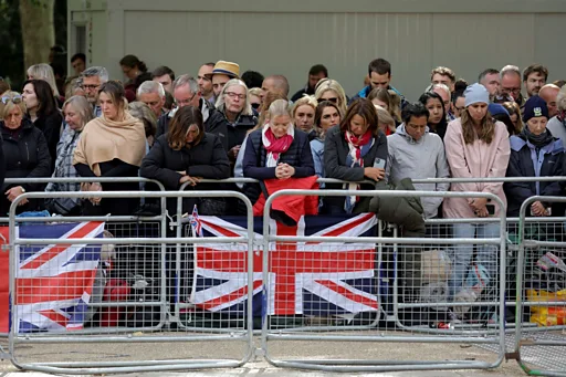 ประชาชนหลายพันคนมายืนเรียงตามเส้นทางขบวนรถบรรทุกพระบรมศพของสมเด็จพระราชินีนาถเอลิซาเบธที่ 2 ที่กำลังมุ่งหน้าออกจากกรุงลอนดอนเพื่อไปประกอบพิธีขั้นสุดท้ายที่โบสถ์น้อยเซนต์จอร์จ พระราชวังวินด์เซอร์