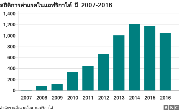 ในช่วงปี 2007 ถึง 2014 มีแรดถูกล่าเพิ่มขึ้นถึง 9,000 เปอร์เซ็นต์ และกลุ่ม “องค์กรอาชญากรรม” หลายกลุ่มกำลังเป็นภัยต่อความอยู่รอดของสัตว์สายพันธุ์นี้
