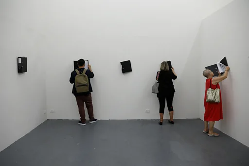 เมื่อผู้ชมก้าวเข้าไปในแกลเลอรีที่ทุกด้านของผนังทาด้วยสีขาวจะพบกับแฟ้มหนาสีดำที่ซึ่ง "แบบฟอร์มขออนุญาต" 12 ชิ้น แขวนอยู่ แทนที่จะเป็นงานศิลปะอย่างภาพวาด ภาพถ่าย ตามความคาดหวังพื้นฐานของคนดู