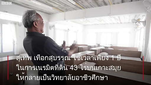 สุเทพ เทือกสุบรรณ ใช้เวลาเพียง 1 ปีในการเนรมิตที่ดิน 43 ไร่บนเกาะสมุย ให้กลายเป็นวิทยาลัยอาชีวศึกษา ท่ามกลางแรงสนับสนุนจากภาคการเมืองและธุรกิจระดับชาติ