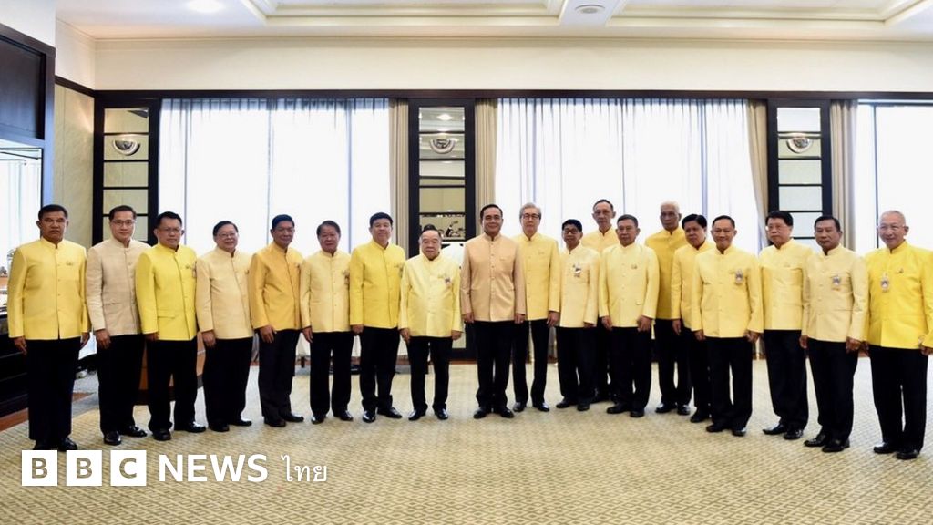 รัฐมนตรี 15 คน ร่วมถ่ายภาพเป็นที่ระลึกกับ พล.อ. ประยุทธ์ จันทร์โอชา นายกรัฐมนตรี และรองนายกรัฐมนตรี อีก 3 คน หลังตัดสินใจอำลา ครม. เพื่อเตรียมตัวเป็นสมาชิกวุฒิสภา (ส.ว.)