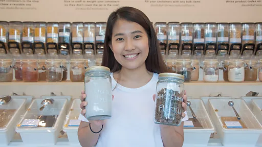 จากพนักงานองค์กรเพื่อสังคม สู่สาวเจ้าของร้านค้าที่มุ่งลดขยะในชุมชน ด้วยการเปลี่ยนพฤติกรรมผู้บริโภค ให้นำภาชนะมาเติม แทนการซื้อจากบรรจุภัณฑ์ใหม่ หลังดำเนินกิจการได้ 5 เดือน เธอดีใจกับกระแสตอบรับที่อบอุ่นและกำลังใจจากผู้คนรอบตัว