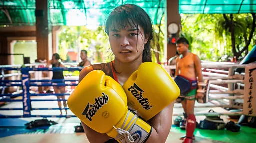 "นาทีสุดท้าย" เสียงตะโกนดังจากข้างสังเวียนผืนผ้าใบ หญิงร่างเล็กแต่กำยำด้วยกล้ามเนื้อ ออกอาวุธหมัด-ศอก-เข่า-เตะ ใส่คู่ซ้อมนักมวยชายร่างใหญ่แบบไม่ยั้ง แรงกระแทกถึงกับทำให้เขาชะงักนิ่งเป็นพัก ๆ