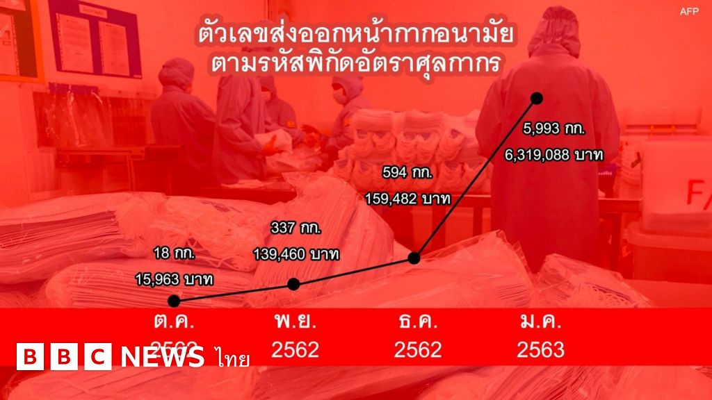 บีบีซีไทย สืบค้นข้อมูลจากเว็บไซต์ของกรมศุลกากรย้อนหลังไป 4 เดือน โดยสืบค้นตามรหัสพิกัดอัตราศุลกากร ในส่วนของหน้ากากอนามัยทางการแพทย์ (Surgical masks) รหัส 63079040 รหัสย่อย 000 ซึ่งยังไม่รวมถึงกลุ่มหน้ากากป้องกันฝุ่น