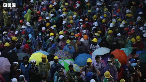 ผู้สื่อข่าวรายงานว่าประชาชนซึ่งสวมเสื้อกันฝน หมวกนิรภัย แว่นตา และพกร่ม ได้รวมตัวกันที่อนุสาวรีย์ชัยสมรภูมิและยึดพื้นที่เกือบทั้งหมดของพื้นผิวถนนโดยรอบได้อย่างรวดเร็ว