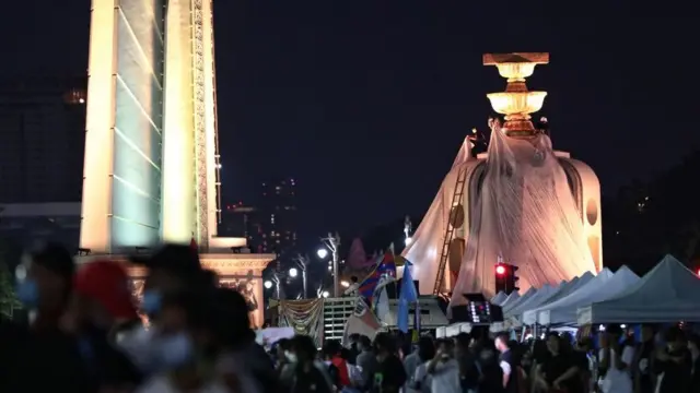 การคลุมผืนผ้าสีขาวห่อหุ้มฐานวางพานรัฐธรรมนูญอนุสาวรีย์ประชาธิปไตย ในการชุมนุม "ม็อบเฟส" เมื่อวันเสาร์ที่ผ่านมา กลายเป็นอีกภาพจำภาพหนึ่งของการชุมนุมในหลาย ๆ ครั้งของกลุ่มที่เรียกตัวเองว่า "ราษฎร" ที่ใช้แฮชแท็กหลักว่า แก้ได้ถ้าแก้รัฐธรรมนูญ