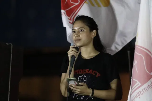 ชุมนุม 24 มี.ค.: มายด์ ภัสราวลี ขึ้นเวทีปราศรัยราชประสงค์ กราบบังคมทูลขอ 3 เรื่อง