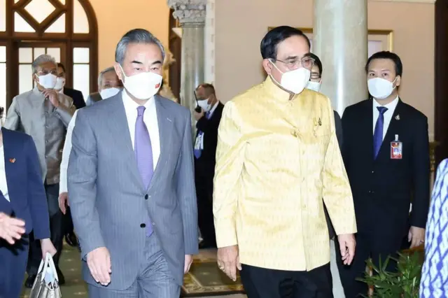 ด้านนายหวัง อี้ กล่าวว่าเป็นเกียรติที่ได้เดินทางเยือนไทย มิตรประเทศที่สำคัญในภูมิภาค พร้อมชื่นชมการบริหารประเทศของ พล.อ.ประยุทธ์ ในการรักษาเสถียรภาพทางสังคม อีกทั้งส่งเสริมการพัฒนาทางเศรษฐกิจ และจัดการความท้าทายเรื่องโควิด-19 ได้อย่างดี ซึ่งจีนเชื่อมั่นว่า นายกรัฐมนตรีจะพัฒนาประเทศไทยได้ดีขึ้นต่อไป