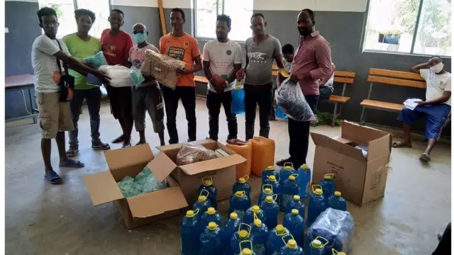 ኣርባዕተ ኤርትራውያን መናእሰይ ብዘካየድዎ ጎስጓስ፡ ኣብ ደገ ካብ ዝቕመጡ ኤርትራውያን ብዓብይኡ ድማ ተጋሩ ሰብሃብትን ቢሮ ሓለዋ ጥዕና ትግራይን ብዝገበርሎም ሓገዝ ሳሙና፣ 'ማስክ' መሸፈኒ ኣፍን ኣልኮልን ዓዲጎም ናብ ሸራሮን ሕጻጽን ዝርከቡ ስደተኛታት ከም ዘብጽሕሎም ኤርትራዊ መንእሰይ ዘርኣይ ደረስ ገሊጹ።