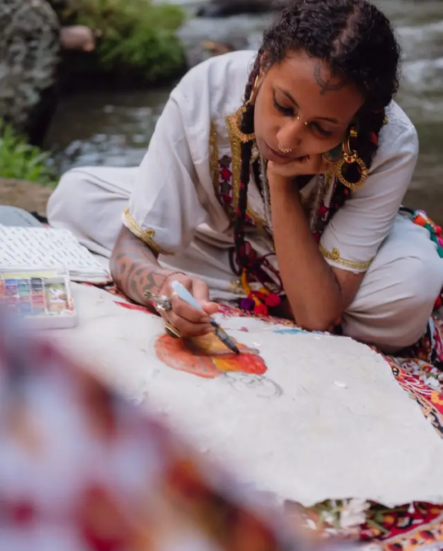 ብኣርትን ዲዛይንን ናይ ካልኣይ ዲግሪ ትምህርታ ኣብ ምክትታል እትርከብ ኵለ መዳያዊ ስነ ጥበባዊት ገብርኤል ፍረወይኒ ተስፋየ፡ በቲ ዛጊድ ኣብ ክሊ ዕድመ ዕስራታት ኰይና ዝሰርሓቶ ስርሓት ዕግብቲ ኣይኰነትን።