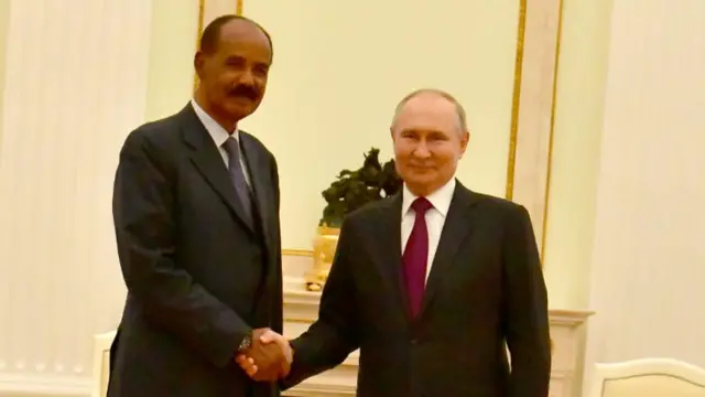 ፕረዚደንት ፑቲን ነቲ ንፈለማ እዋን ዝረኸቦ ፕረዚደንት ኤርትራ ኢሳይያስ ኣፈወርቂ፡ ነቲ ኣብ ዝሓለፈ 30 ዓመታት ዝምድና ክልቲአን ሃገራት ንምድንፋዕ ዝገበሮ ጻዕሪ ንኢዱ።