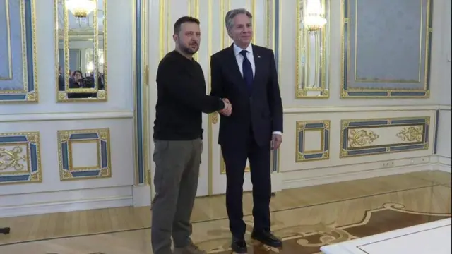 ብሊንከን ብወገኑ ን“ኣዝዩ ፍሉይ ጽንዓት” ዩክረይንን ን“ጥንካረን መሪሕነትን” ዘለንስኪን ዘለዎ ናእዳ ኣቕሪቡ። ንዩክረይን "በዳሂ ግዜ" ምንባሩ ቅቡል ብምግባር ከኣ ኣብ ዓውደ ውግእ ወሳኒ ለውጢ ከምዝመጽእ ዝኽእል ሓገዝ ኣሜሪካ "ኣብ መንገዲ" ከምዘሎ ተዛሪቡ።