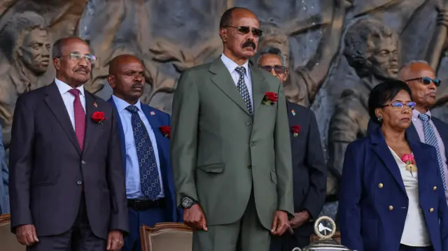 ![ኣብቲ መበል 48 ሓፈሻዊ ዋዕላ ሕቡራት ሃገራት ንወኪል ኤርትራ ዝመርሐ ሽዑ ምኒስተር ጉዳያት ወጻኢ ዝነበረ ማሕሙድ ኣሕመድ ሸሪፎ [ጸ]፡ ኣብ ጐድኑ ኣቶ የማነ ገብረኣብ፡ ኣቶ ሓጐስ ገብረሂወት፡ ብድሕሪኡ ኣቶ የማነ ገብረመስቀል፡ ኣቶ ኣሚን ሓሰንን ካልኦትን ይረኣዩ።](https://ichef.bbci.co.uk/ace/ws/400/cpsprodpb/1ffe/live/bf49b970-b354-11f0-ad84-99ce12c6004d.jpg.webp)
