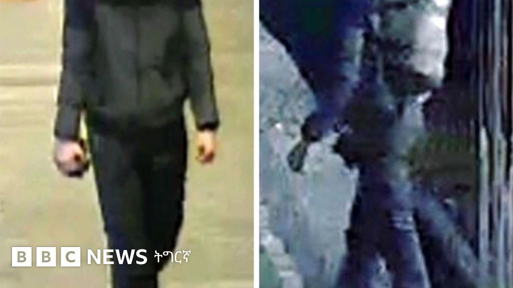 እቶም ካብ ሕቡኣት ካሜራታት [ሲሲቲቪ] ዝተወስዱ ክልተ ኣሳእል፡ ሓደ ሰብ ገጹ ተኸዊሉ፡ ጸሊም ክዳን ለቢሱን ቦርሳ ሒዙን ዘርእዩ እዮም።
