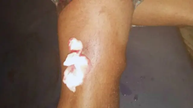 "ሓሙሽተ ሰባት ኢና ብጥይት ተወቒዕና። ኣነ ኣብ ልዕሊ ብርከይ ብክላሽን ተኵሶም እዮም ወቒዖምኒ። ብድሕሪኡ ምስ ወደቕኹ'ውን ብበትሪ ደጋጊሞም ወቒዐምኒ'ዮም። ሕዚ ኣብ ከቢድ ቃንዛ እየ ዘለኹ" ኢሉ።