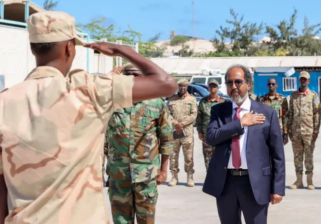 ፕረዚደንት ሓሰን ሸኽ ማሕሙድ ኣብ ግንቦት 2022 ናብ ስልጣን ካብ ዝመጽእ ንደሓር ኣርባዕተ ግዜ ናብ ኤርትራ ምብጻሕ ከካይድ እንከሎ እቶም ወተሃደራት ኣብ ኤርትራ ምህላዎም ንፈለማ እዋን ዝተገለጸ እቲ ፕረዚደንት ስልጣን ኣብ ዝተረከበሉ ኣጋጣሚ እዩ።