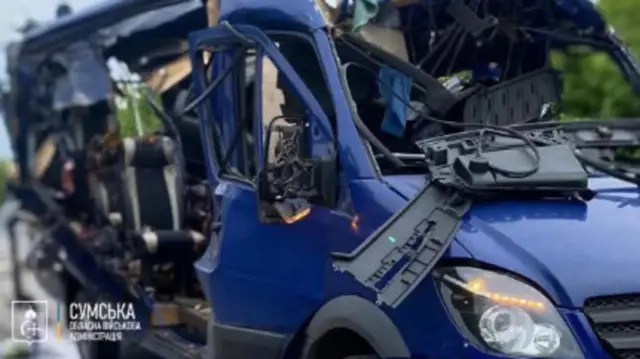 ሓላፊ ዞባ ሱሚ ኦሌህ ህሪሆሮቭ፡ እታ ኣውቶቡስ ሎሚ ቀዳም ብኣቈጻጽራ እታ ሃገር ሰዓት 06፡17፡ ብናይ ሩስያ ሰብ ኣልቦ ነፋሪት ከም ዝተሃርመት ገሊጹ።