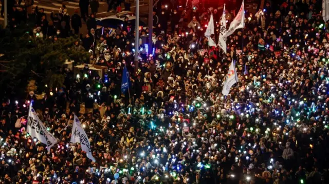 ኣብ ደቡብ ኮርያ ዝተጀመረ ተቓውሞታት በርቲዑ ዝቐፀለ ዀይኑ፡ እቲ ኣብ ዝሓለፈ ሰሙን ወተሃደራዊ ሕጊ ዝኣወጀ ፕረዚደንት፡ ካብ ስልጣኑ ንምእላይ ካብ ውሽጥን ካብ ደገን ቃልሲ ይካየድ ኣሎ።