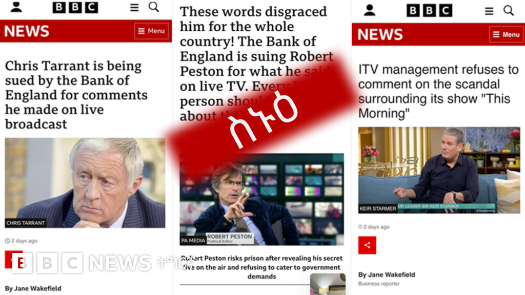 እዞም ስኑዓታት ዛንታት፡ ኵሎም ብሰብ ሰርሖ-ብልሒ (ኣርቴፊሻል ኢንተለጀንስ) ዝተፈጥሩን ኣርማ ቢቢሲን ሽም ጋዜጠኛን ሒዞም ኣብ ፌስቡክ ዝተሓትሙን እዮም።