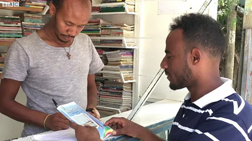 ኣብዛ ህሞት እዚኣ ክልተ ግዱሳት መሓዙቶም ኣርኪቦምሎም። ተወዳዳራይ ብሽክለታ ፅጋቡ ገብረማርያምን ሚሩ ጌታሁንን ብሓባር ኰይኖም እታ ሎሚ እተገልግሎም ዘላ ተንቀሳቓሲት እንዳ መፅሓፍ ኣስሪሖምሎም።