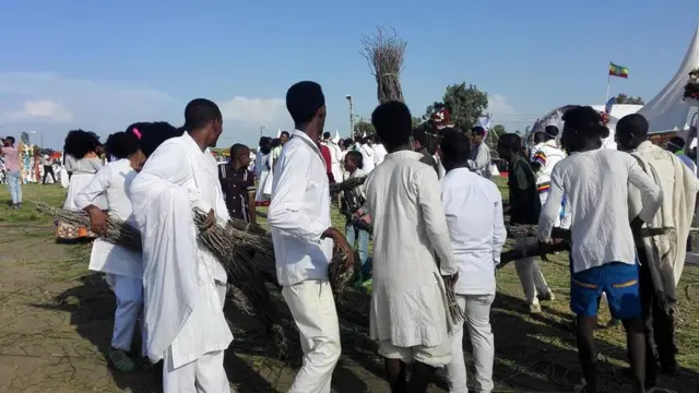 ኣብ ጎቦ ጮምዓ በዓል መስቀል ንምብዓል በብዓመቱ ብርክት ዝበለ ህዝቢ እዩ ዝርከብ።