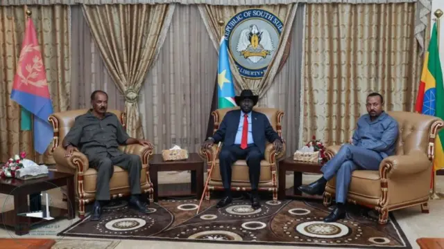 ፕረዚደንት ኢሳይያስ ኣፈወርቂን ቀዳማይ ሚኒስተር ኣቢይ ኣሕመድን ናይ ሓደ መዓልቲ ናይ ስራሕ ምብጻሕ ንምፍጻም ሎሚ ንጉሆ እዮም ናብ ርእሰ ከተማ ሪፓብሊክ ደቡብ ሱዳን፡ ጁባ ኣምሪሖም።