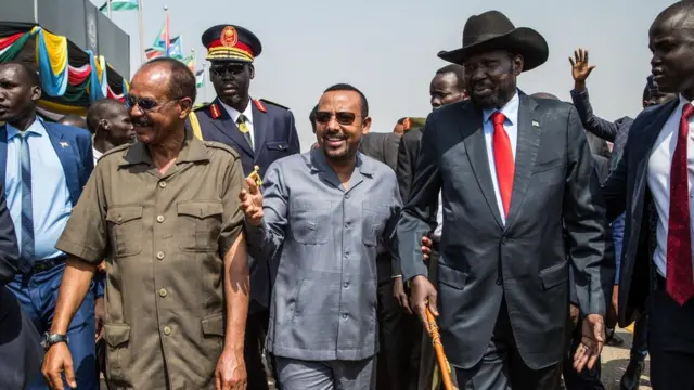 - ቀዳማይ ሚኒስተር ኢትዮጵያ ዶክተር ኣቢይ ኣሕመድን ፕረዚደንት ኢሳይያስ ኣፈወርቅን 4 መጋቢት ካብ ኣህጉራዊ መዓርፎ ነፈርቲ ኣስመራ ናብ ደቡብ ሱዳን ተበጊሶም። ክልቲኦም መራሕቲ ምስ ፕረዚደንት ደቡብ ሱዳን ሳልቫ ኪር ብዛዕባ ዞባዊ ጉዳያት ስሉሳዊ ርክብ ዘትዮም።