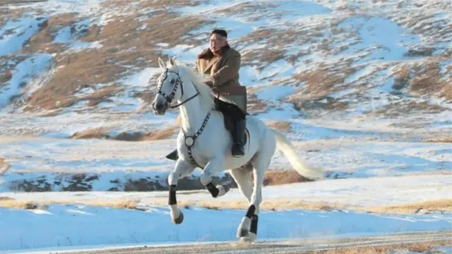 ኣብ 'ቅዱስ' እምባ ብፈረስ ክጋልብ ዝተራእየ መራሒ ሰሜን ኮርያ