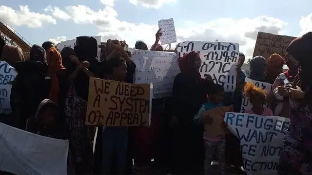 ወላ እኳ እቶም ስደተኛታት ሰልፊ እንተኣካየዱ፡ እቲ ትካል ግን ነቶም ስደተኛታት ናብ ዝኾነት ሃገር ክወስዶም ከምዘይክእል ኣፍሊጡ።