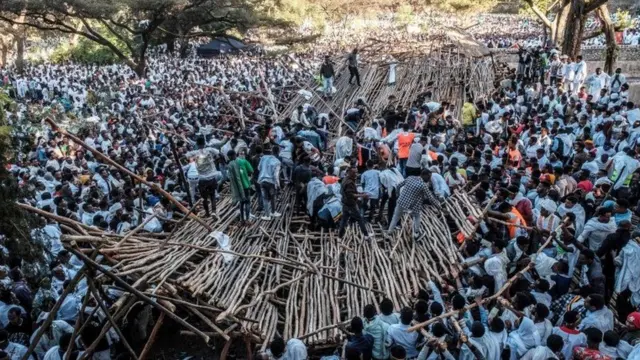 ኣብቲ ኣብ ከተማ ጎንደር፡ ክልል ኣምሓራ፡ ዝካየድ ዝነበረ ጽምብል በዓል ጥምቀት፡ ብዘጋጠመ ሓደጋ ብውሕዱ ሰለስተ ሰባት ከም ዝሞቱ ጸብጻባት ካብታ ከተማ ሓቢሮም።