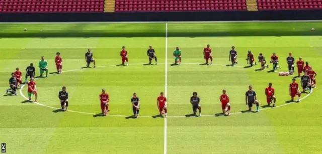 ተጻወቲ እንግሊዛዊት ክለብ ሊቨርፑል፡ ብርኮም ዓጺፎም ብምምብርካኽ ንቅትለት ናይቲ ኣብ ኢድ ፖሊስ ዝሞተ ጸሊም ኣመሪካዊ ጆርጅ ፍሎይድ ዘለዎም ተቓውሞ ገሊጾም።