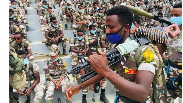 እቶም ዕጡቓት ሓይልታት ኣብ ጎደናታት መቐለ ብሰልፊ ክጓዓዙን ኣብ ስታድዮም ትግራይ ድማ ተኣኪቦምን ተራእዮም።