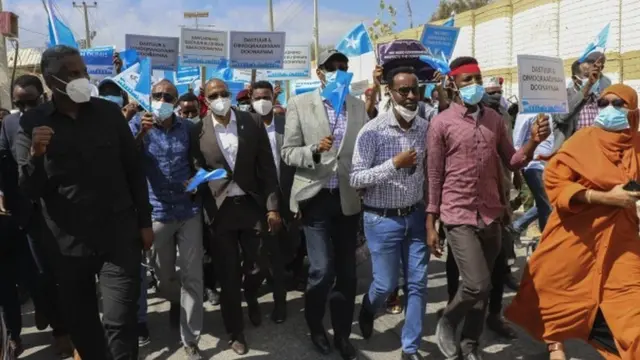 ዕድመ ስልጣን ናይቲ ብፕረዚደንት መሓመድ ዓብዱላሂ ፋርማጆ ዝምራሕ መንግስቲ ኣብ ዝሓለፈ ሰሙን ድሕሪ ምብቅዑ፡ ተቓወምቲ ወገናት ኣንጻሩ ተቓውሞታት ክካየድ ጸዊዖም።