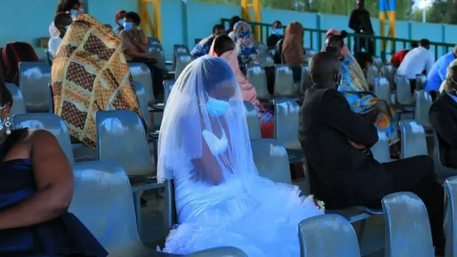 መምርሒታት ኮሮናቫይረስ ጥሒስኩም ዝተባህሉ ሓደሽቲ ሩዋንዳውያን መርዑት፡ ስድርኦምን ዘሰንይዎም ዝነበሩ ዕዱማትን ብምልኦም ኣብታ መዓልቲ መርዓ ኣብ ስታድዮም ክሓድሩ ተገዲዶም።