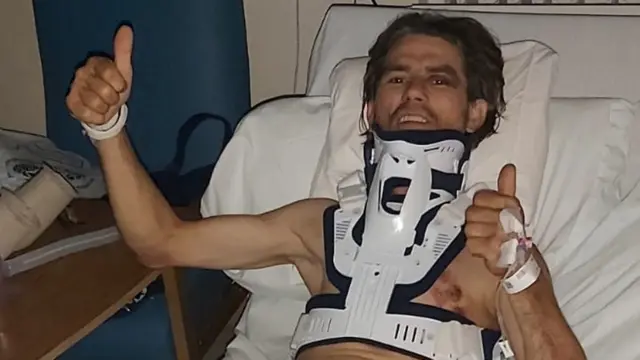 ናብ ሆስፒታል ዝተወሰደ ኮስተል ሰለስተ መስበርቲ ናይ መሰንግል፣ ምምዝባል ናይ ማእገር፣ ኣብ ዓንዲ ሕቕዑ መንቃዕቲ ናይ ዲስክ ከም ዘጋጠሞን ኣብ ክልተ ኣእጋሩ ናይ ቆርበት ምውሳብ ከም ዘድልዮን ሓለቕኡ ዴቭ ሪቻርድስ ሓቢሩ።