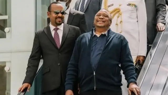 ኡሁሩ ኬንያታ ኣብ ኣዲስ ኣበባ ኣብ ዝኣተወሉ ቀዳማይ ሚኒስተር ኣብዪ ኣሕመድን ፕረዚደንት ሳህለወርቅ ዘውደን ከምዝተቐበልዎ መራኸብቲ ሓፋሽ እታ ሃገር ጸብጺበን ነይረን።