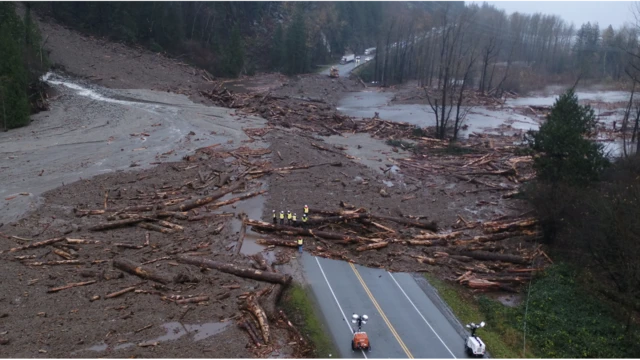 ገለ ክፋል ናይቲ ንቫንኩቨር ምስ ካልእ ክፋል እታ ሃገር ዘራኽብ ቀንዲ መስመር 'ትራንስ-ካናዳ ሃይዌይ' ኣብ ትሕቲ ማይ ጥሒሉ ኣሎ።